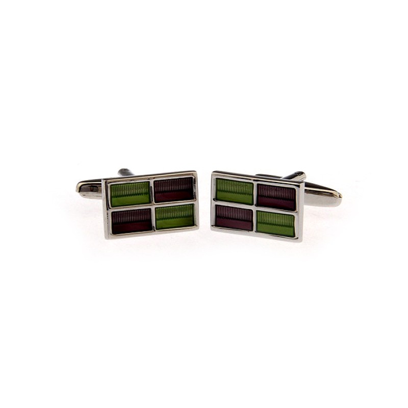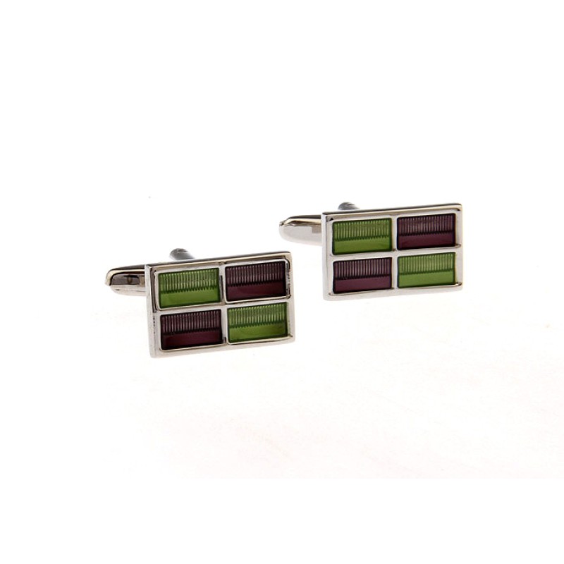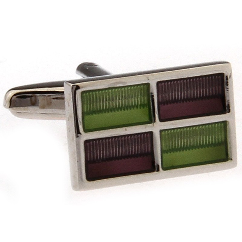 Terasest mansetinööbid 20x17mm, pealt rohelise ja lilla emailiga.