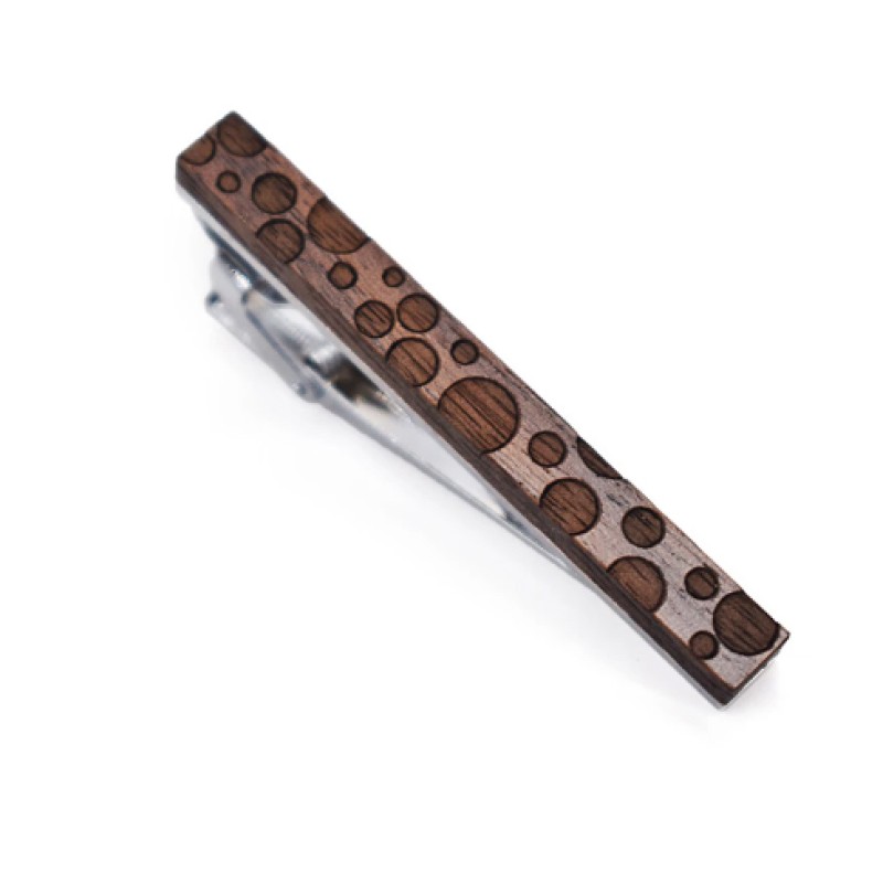 Terasest lipsunõel, pealt laseriga graveeritu puit. Lipsunõela mõõt: 57x7mm.