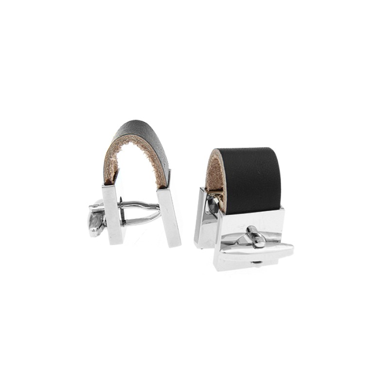 Naturaalsest musta värvi nahast disain mansetinööbid koos kirurgilise terasega. Mõõt 16x31mm.