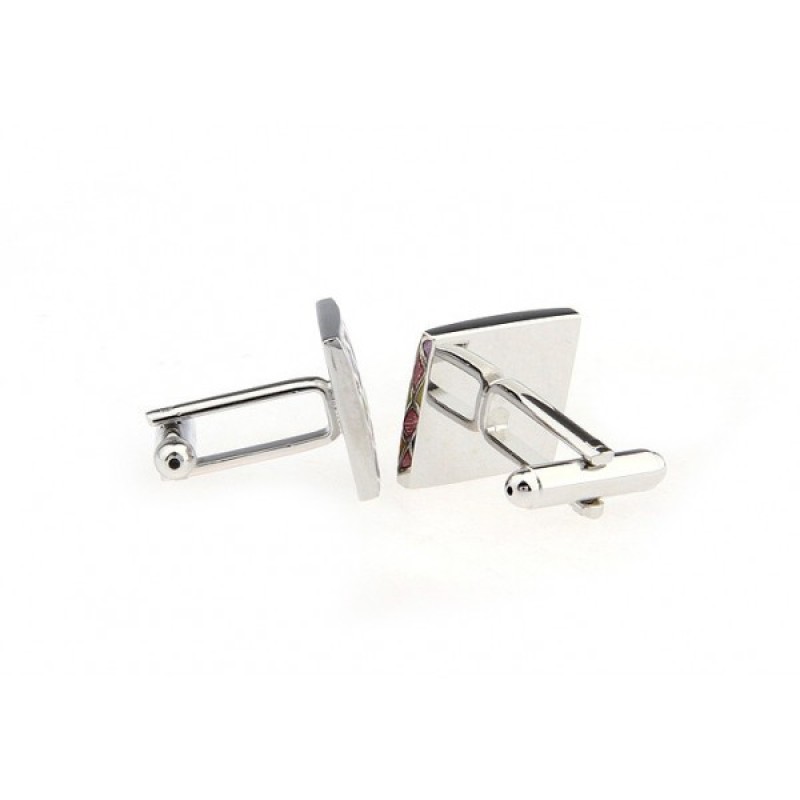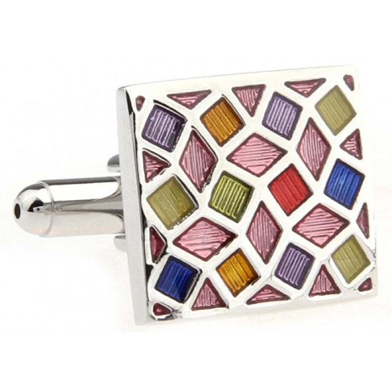 Terasest mansetinööbid, värviliste väikeste rombidega, mõõt 18x15mm.