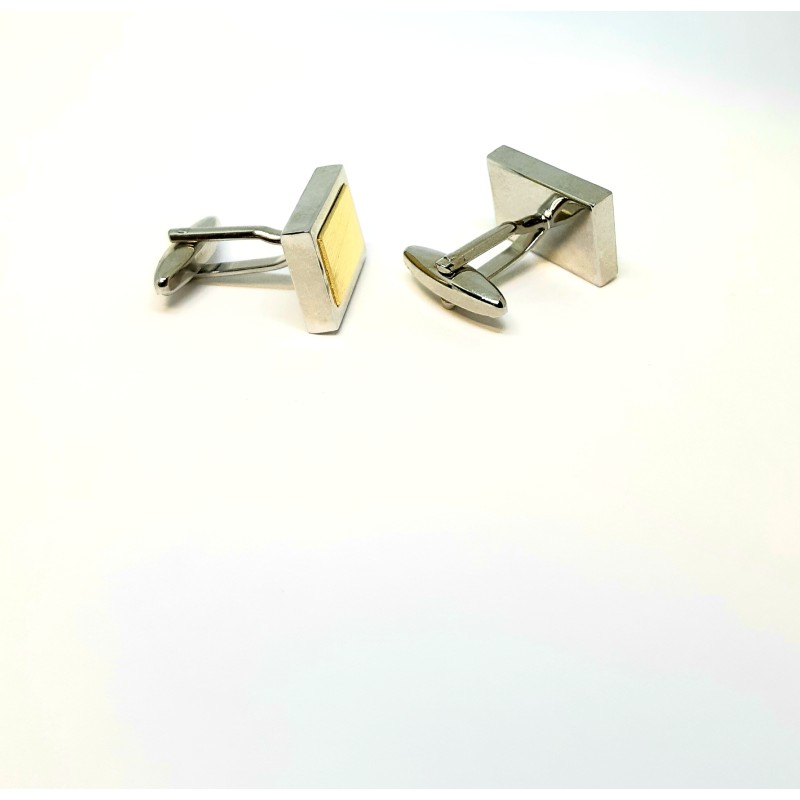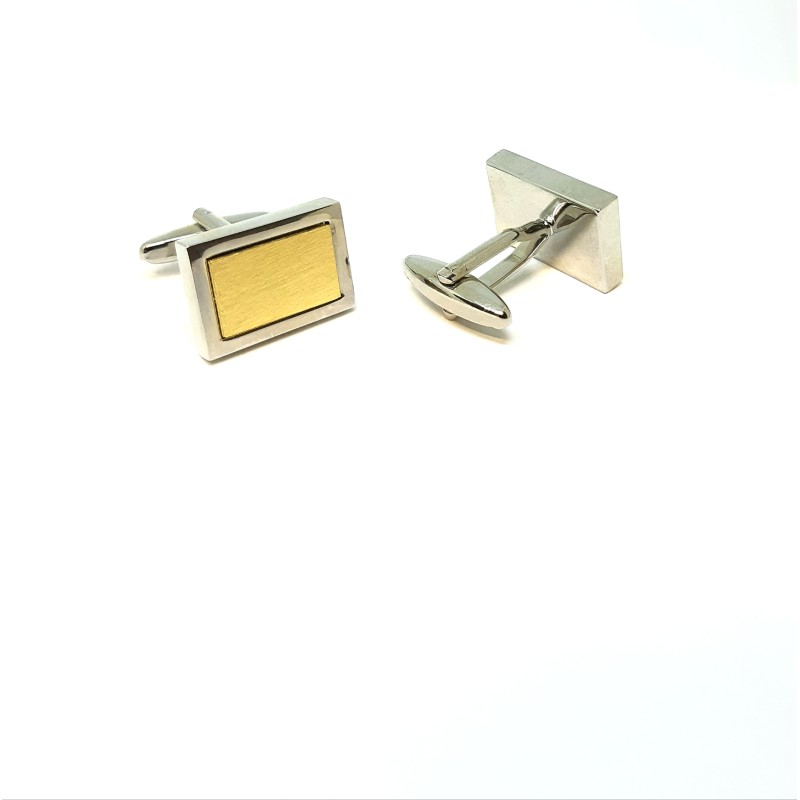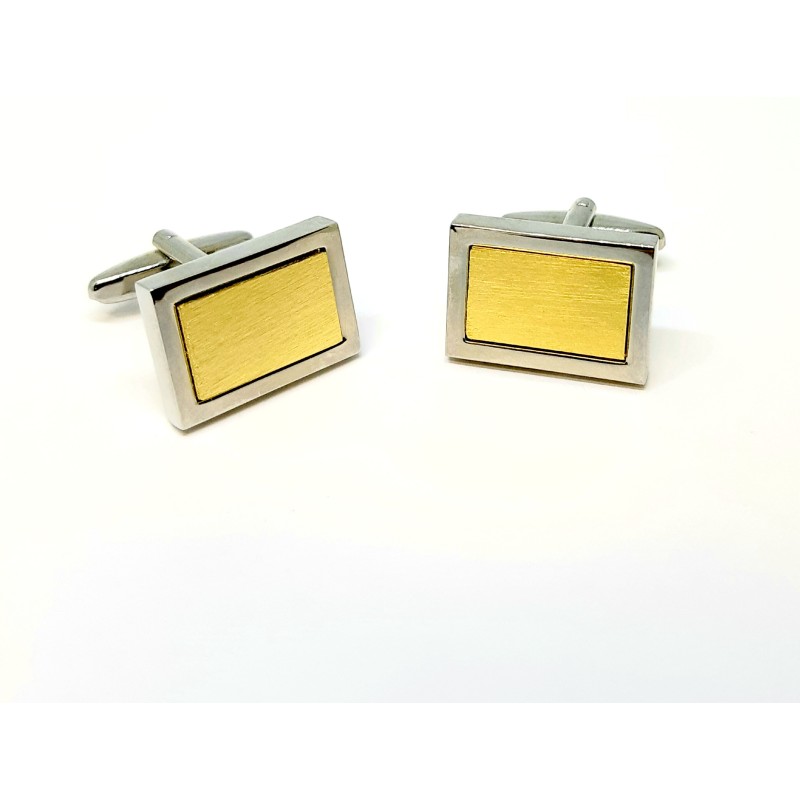 Mansetinööbid kirurgilisest terases - hõbedane läikiv raam ja sees matt kuldne ristkülik. Mõõt 20x10mm.