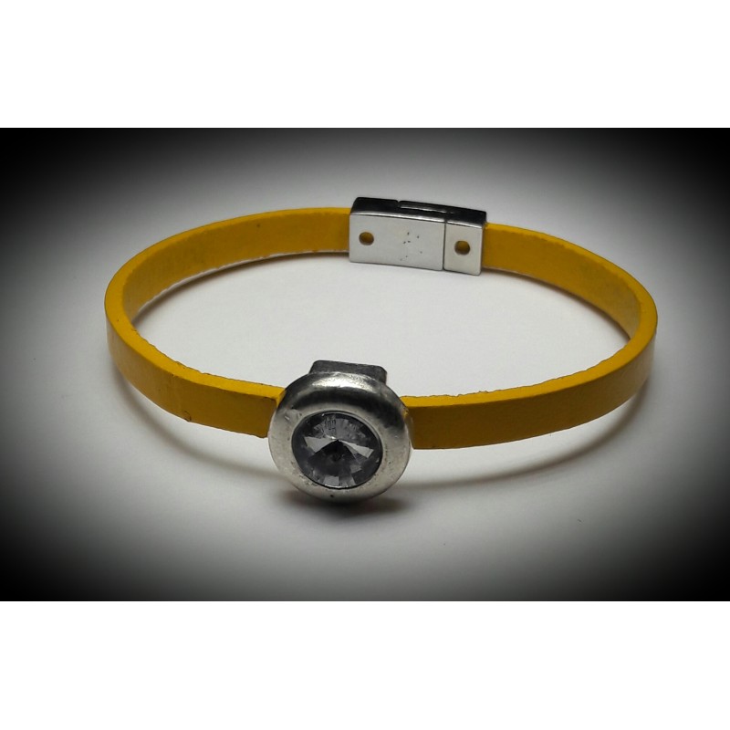 Naturaalsest 5mm kollasest nahast käevõru. Käeketil on magnetkinnitus, 8mm valge kristalliga. Saadaval 16,5cm