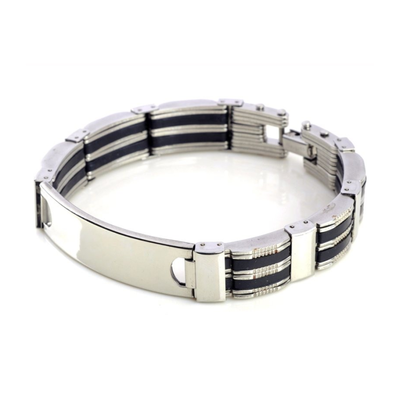 Käekett meestele - kirurgiline teras ja must plastik. Käeketi laius 1,3cm, pikkus 21cm. Graveeringu võimalus.