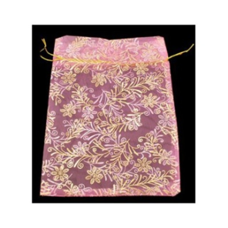 Roosa kuldse säbruga organza kinkekott, mõõdud 7x5,5cm.