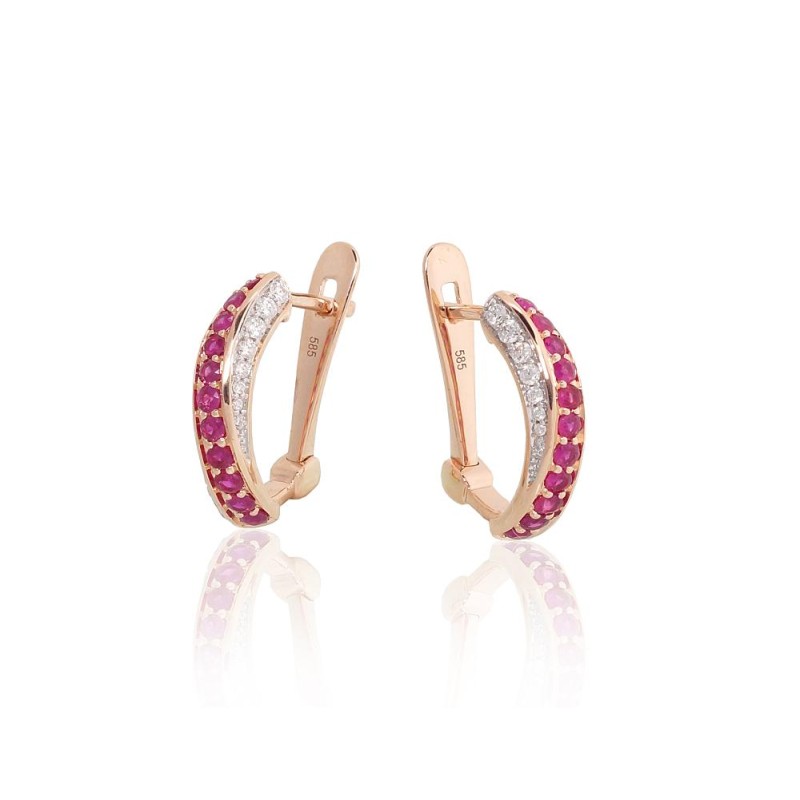 Kivi: Teemantid, Rubiin. Keskmine kaal: 2.54gr. Proov: 585°. Pikkus: 15.5mm. Tarneaeg kuni 10 tööpäeva.