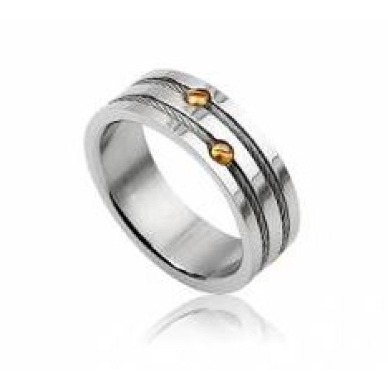 Terasest sõrmus, mõlemas ääres trossid, mida hoiavad kuldsed täpid. Laius 8mm, suurused 20 ja 20,5.