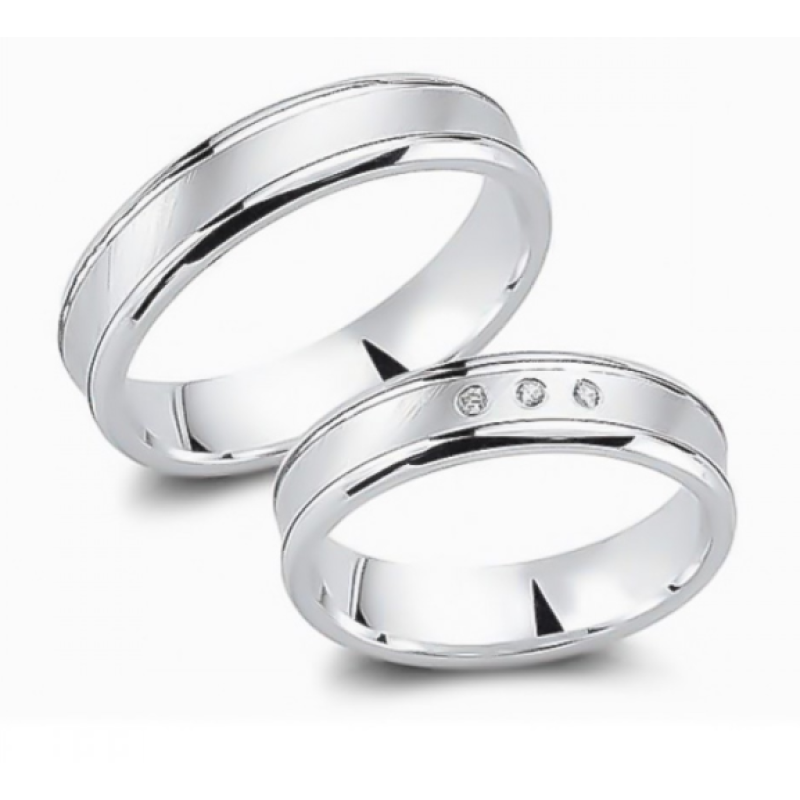 925 hõbe, sirge profiiliga sõrmuse laius 5mm. Naise sõrmusel on valged 3 tsirkooni, mehe sõrmus on ilma kivideta. Sõrmuste komplekti keskmine kaal ~8,2g.