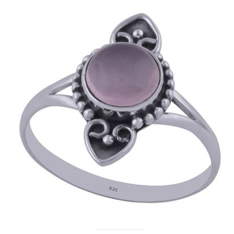 925 prooviga hõbesõrmus, 2,5g, suurus 16,5 Naturaalse ümara roosa kvartsiga 8mm. India käsitöö.