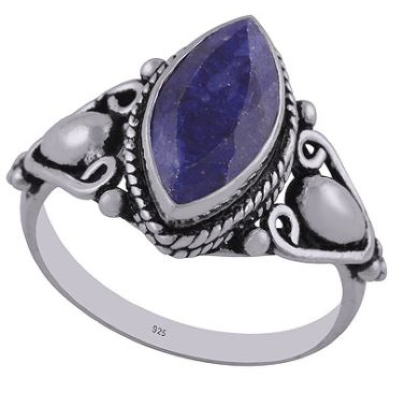 925 prooviga hõbesõrmus, 3,3g, suurus 19,8. Piklik sinine lihvitud safiir 15x6mm. India käsitöö.