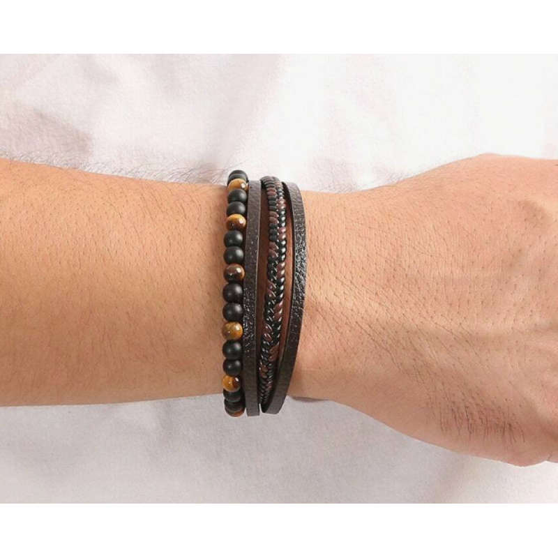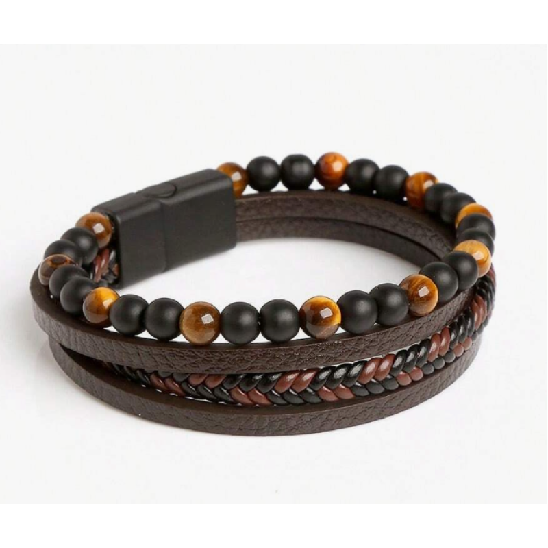 Tumepruunides toonides käekett tiigrisilma ja obsidiaaniga. Käeketi pikkus 21cm.