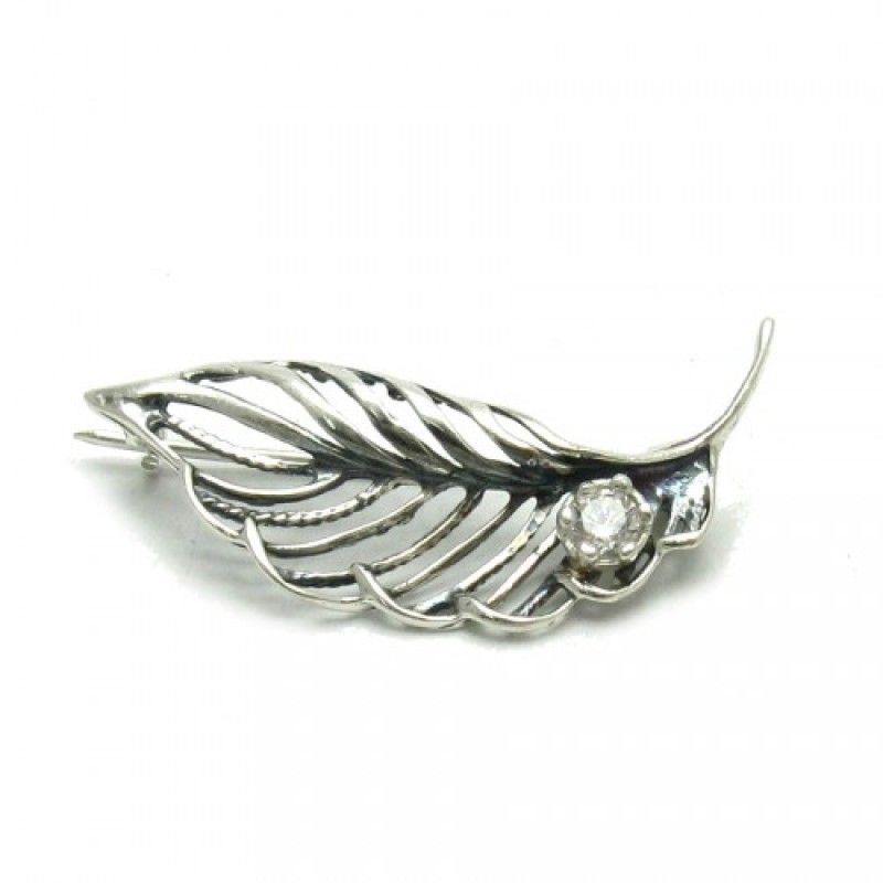 925 prooviga hõbepross. Väike valge tsirkoon. Ligikaudne kaal 2,3g, mõõt: 3,5x1,5cm.