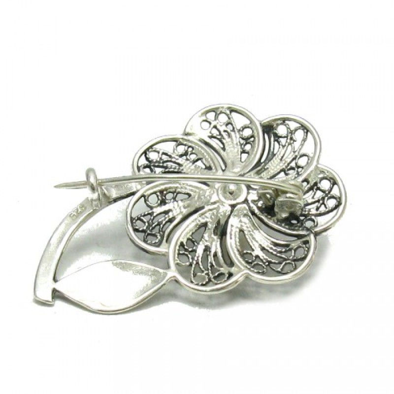 925 prooviga hõbepross. Ligikaudne kaal 3,8g, mõõt: 3,3x2,3cm. Sünteetiline pärl..