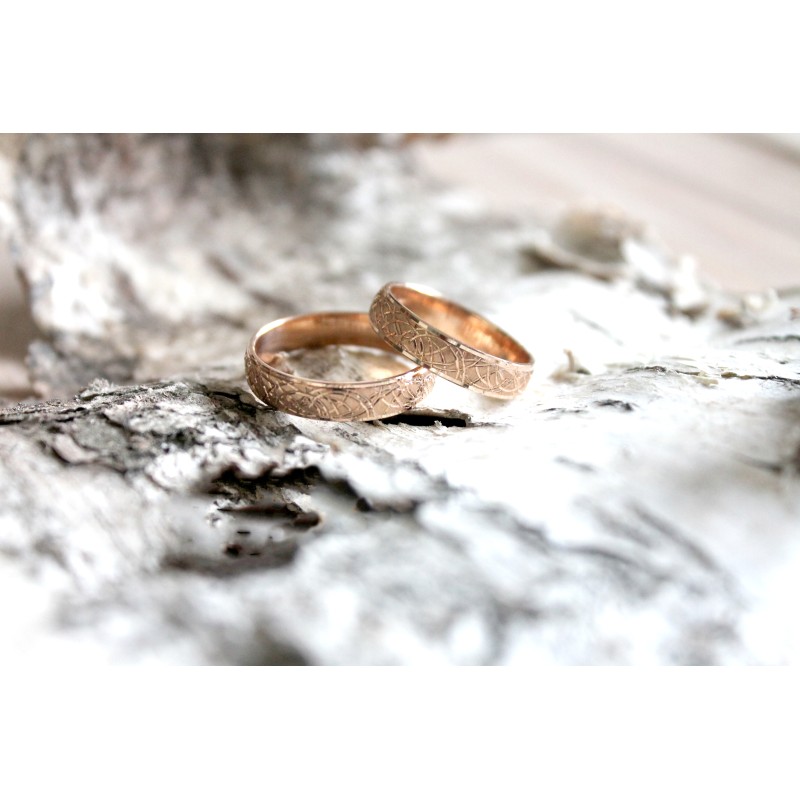 585 punane kuld. Sõrmuse laius 4,5mm ja paksus 1,2mm. Saadaval suurus 17,5 (3,39g)