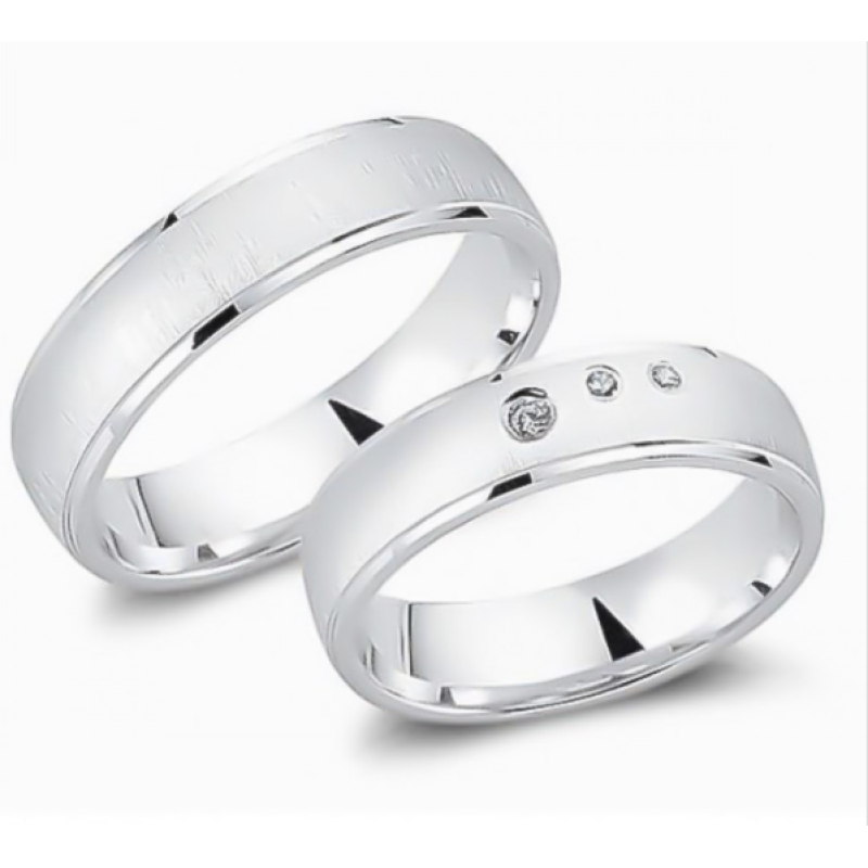 925 hõbe, poolkumera sõrmuse laius 5,5mm. Naise sõrmusel on valged 3 tsirkooni, mehe sõrmus on ilma kivideta. Mateeritud, ääred läikivad. Sõrmuste komplekti keskmine kaal ~9,6g.