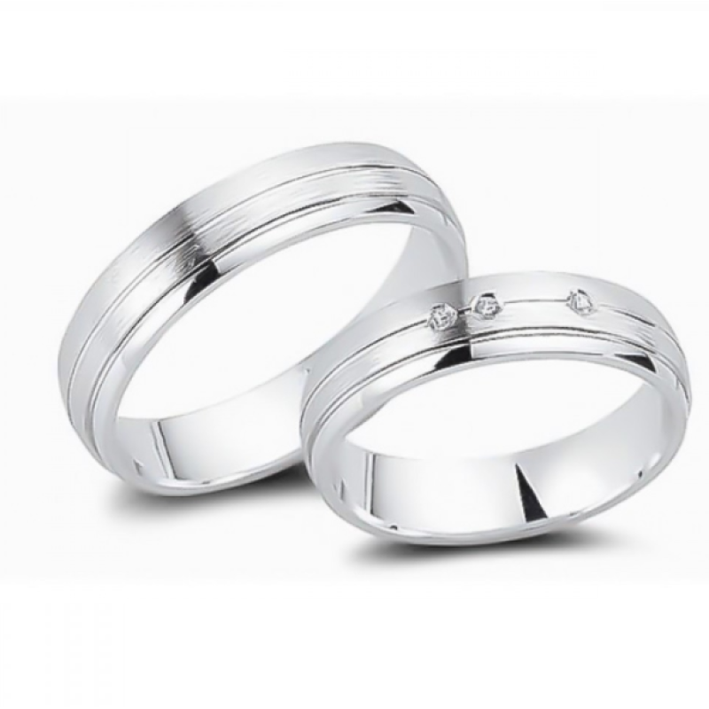 925 hõbe, sile profiil, sõrmuse laius 5mm. Naise sõrmusel on valged 3 tsirkooni, mehe sõrmus on ilma kivideta. Sõrmuste komplekti keskmine kaal ~7,8g.