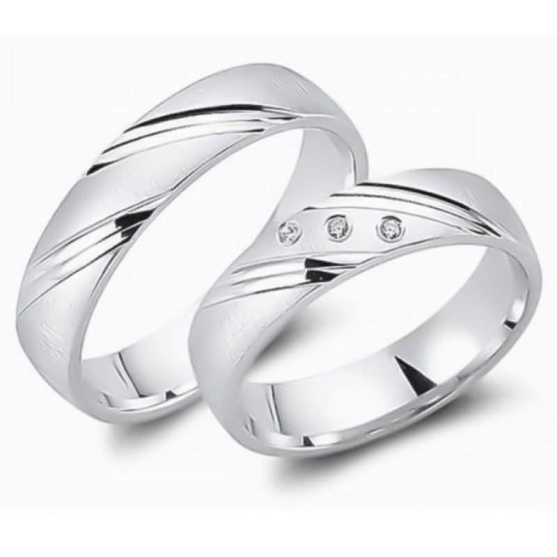 • Abielusõrmuste komplekt hõbedast - 3 tsirkooni ja diagonaal triibud