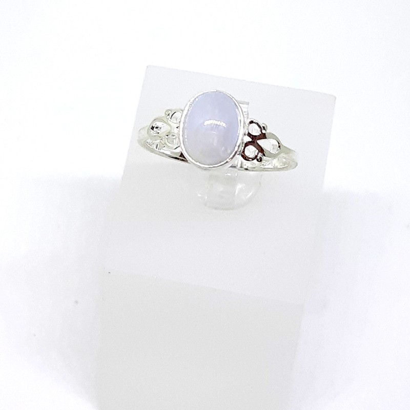 925 prooviga hõbesõrmus naturaalse ovaalse kaltsedoni e.pitsahhaadiga. Suurus 17. Kivi mõõt 8x6mm. Sõrmuse kaal 1,97g.