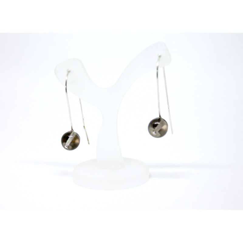 Suitsukvartsiga hõbekõrvaõrngad. Pikkus 4cm, kaal 4,42g. Suitsukvartsi läbimõõt 10mm.