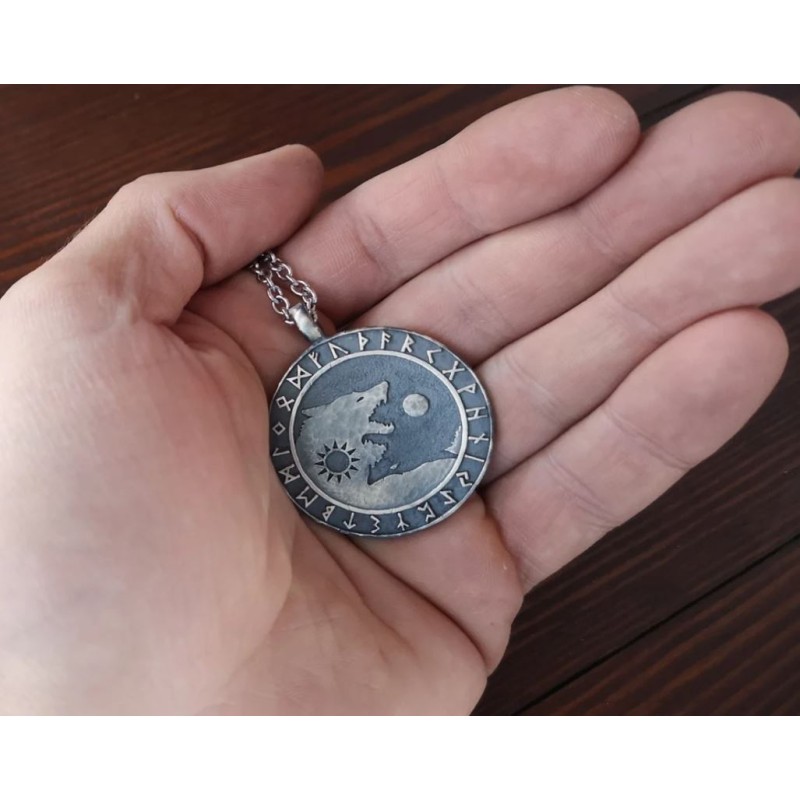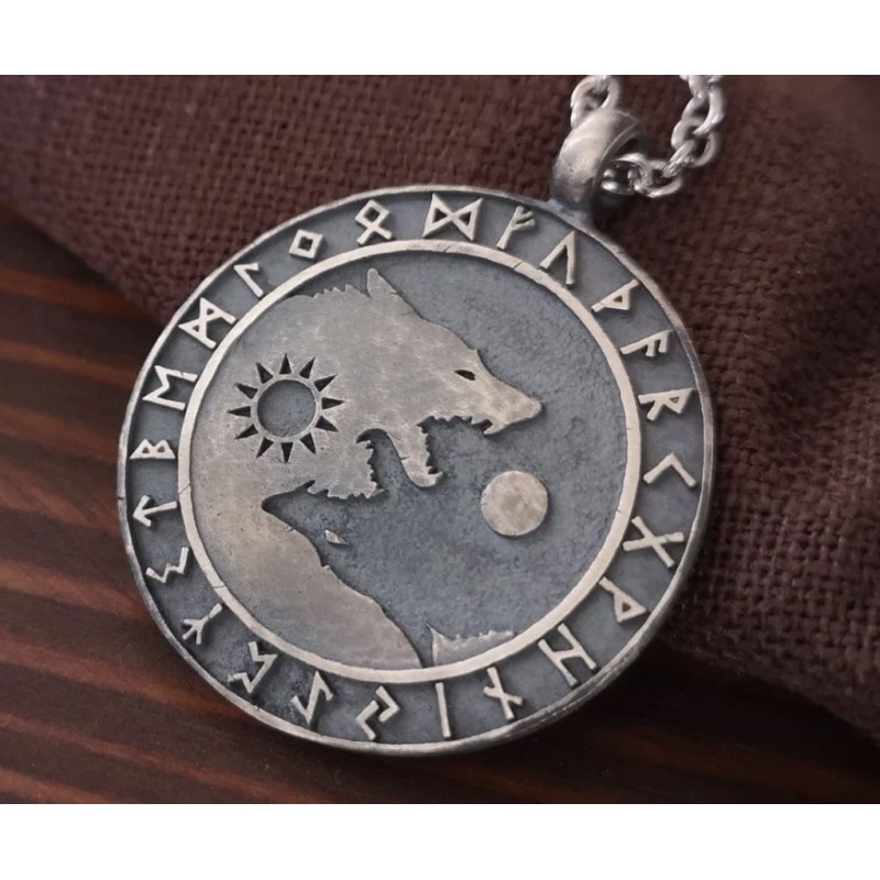 Viikingite mütoloogias oli 2 hunti nimedega Geri ja Freki. Need hundid valvasid peajumal Odinit Valhallas. Kui üks hunt magas, oli teine ärkvel. Sellel ripatsil kujutavad need loomad erinevate tsüklite kordumist ja elu kestvust, seda ripatsit võib kutsuda kui Viikingite Yin Yangiks. Ripatsil on kujutatud ka päike ja kuu.