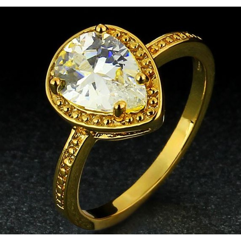 Baasmetall ülekullatud kollase kullaga, valge tilga kujuline tsirkoon. Saadaval suurus 16,5. Kaal 2,1g