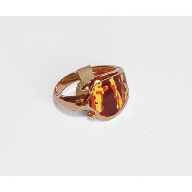 Sõrmus: Baasmetall ülekullatud punane kuld. Pruuni kollasekirju tööstuslik vaik.