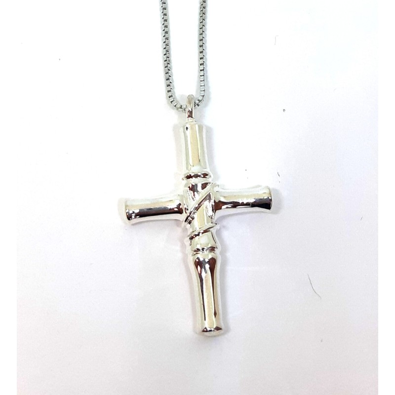Suurem rist 4x2,7cm. Baasmetall üle hõbetatud. Keti pikkus 45cm.