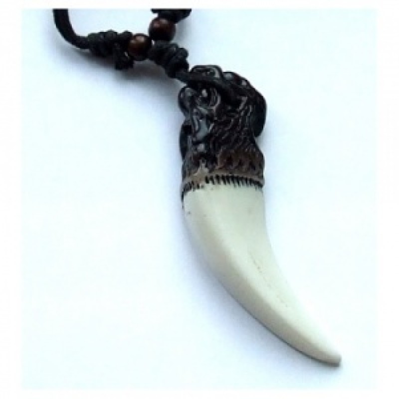 Kaelakett - valge kihv. Ripatsi mõõt: 7x3cm. Nöörist kaelapaela pikkus reguleeritav, alates 40cm-st.