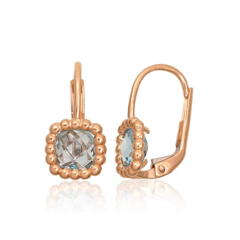 Kivi: Helesinine topaas. Keskmine kaal: 2.13gr. Proov: 585°. Pikkus: 16mm. Tarneaeg kuni 10 tööpäeva.